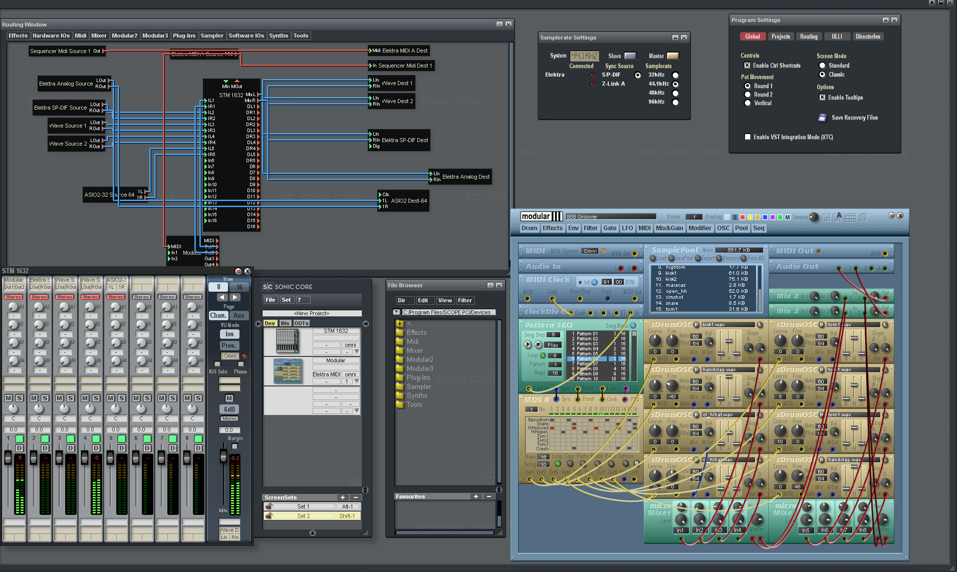 Pretty much like in the old days — or almost! Let’s say, like in the early 2000s. We use classic hardware (Creamware Scope, Novation, Yamaha…) and old‑school software (Cubase SX, various VST plugins from Native Instruments, EastWest, and many others!).